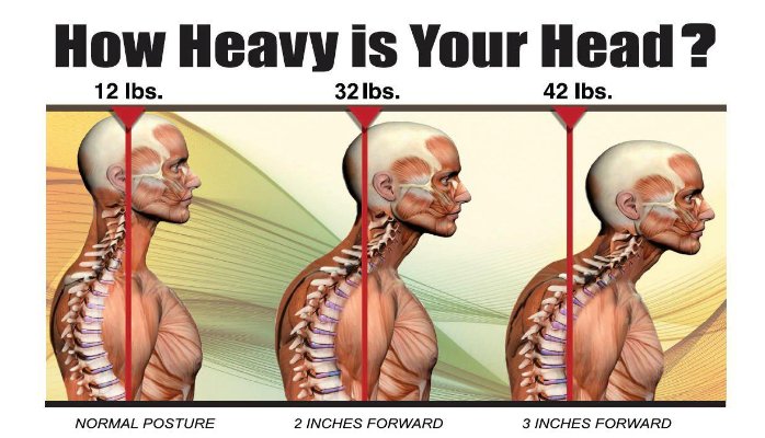 Imagine how much harder you have to work to keep you from falling flat on your face when your head is that far forward making it feel more than 3 times as heavy! As a result, you can be sure to feel pain and degeneration over time.